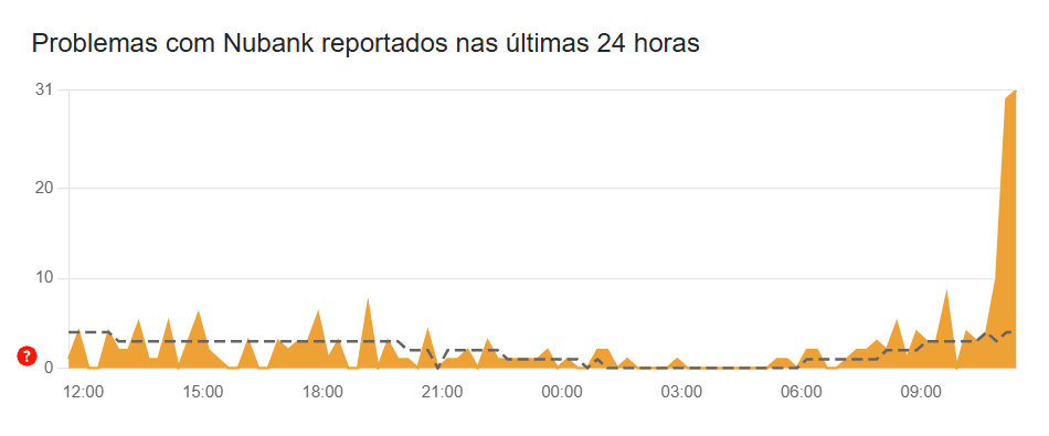De acordo com o site Downdetector, a maioria dos problemas estão relacionados à falhas no login no aplicativo Nubank e inconsistências nas transações via Pix, como demora no crédito.