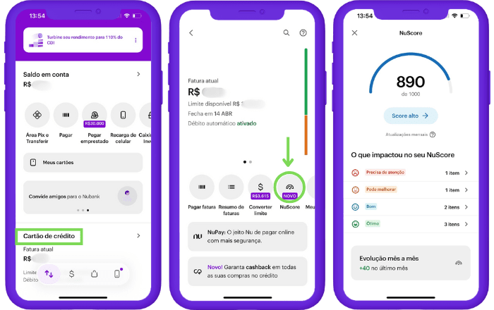 Isso porque, através do aplicativo Nubank, os clientes conseguirão ver sua nota e quais hábitos favorecem ou prejudicam o score de crédito. Assim, podem desbloquear melhores condições.