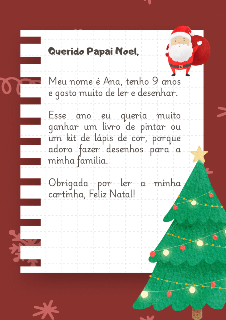 Veja, a seguir, um exemplo de como escrever um cartinha para o Papai Noel dos Correios: