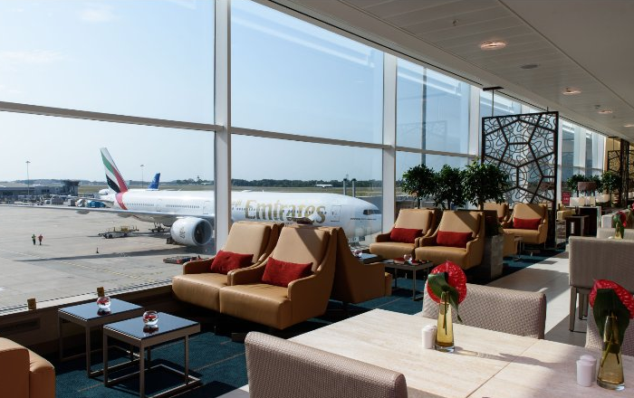 A nova sala VIP da Emirates está localizada ao lado dos portões de embarque, no Satélite 1. Desse modo, proporciona uma vista única do aeroporto e permite acesso ao embarque direto do lounge.