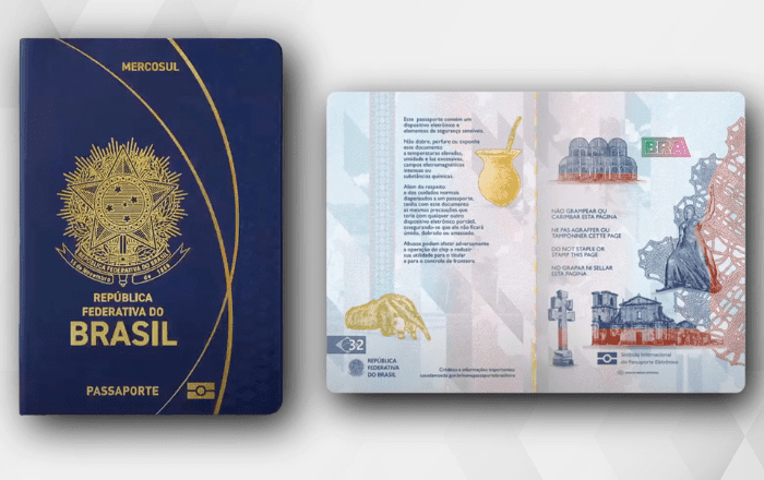 O novo passaporte conta com uma estilização da bandeira nacional e alto relevo seco timbrado na capa.