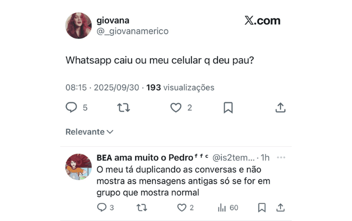 Ontem (29), muitos usuários do WhatsApp relataram problemas com a plataforma. No entanto, no mesmo dia, à tarde, a plataforma resolveu as demandas.