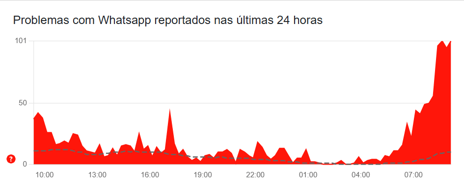 Mas, as reclamações voltaram e, na manhã de hoje (30), se intensificaram, segundo o Downdetector e comentários nas redes sociais. De acordo com usuários, o WhatsApp caiu e está fora do ar.
