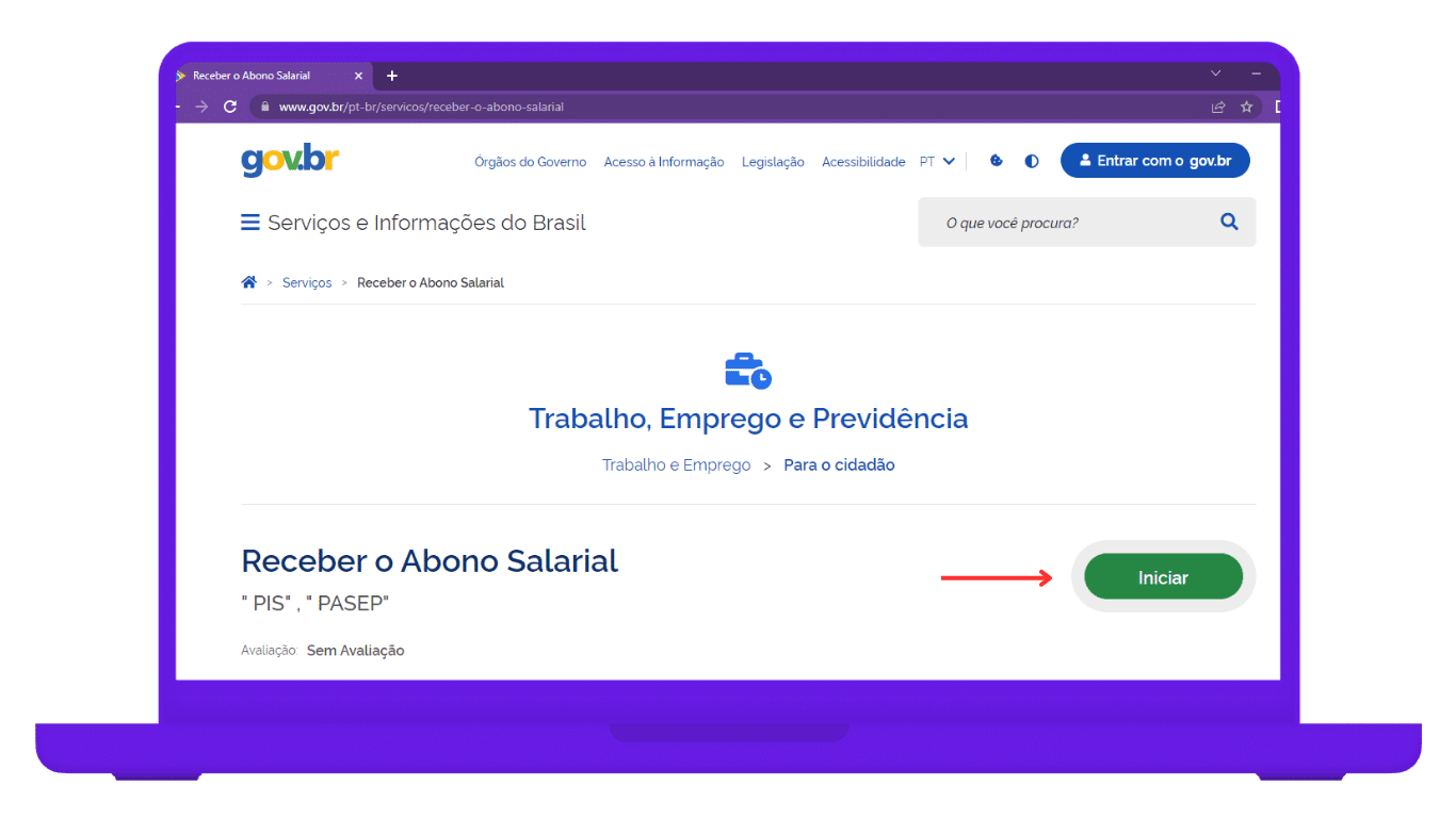 Passo 2 – Na tela do abono salarial clique no botão verde INICIAR;