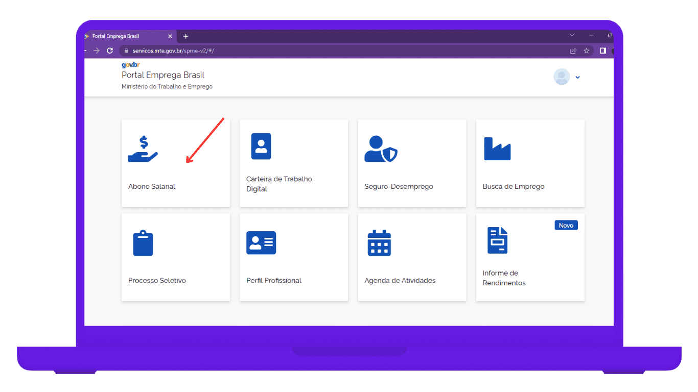 Passo 5 – Na tela inicial do Portal Emprega, clique em ABONO SALARIAL;
